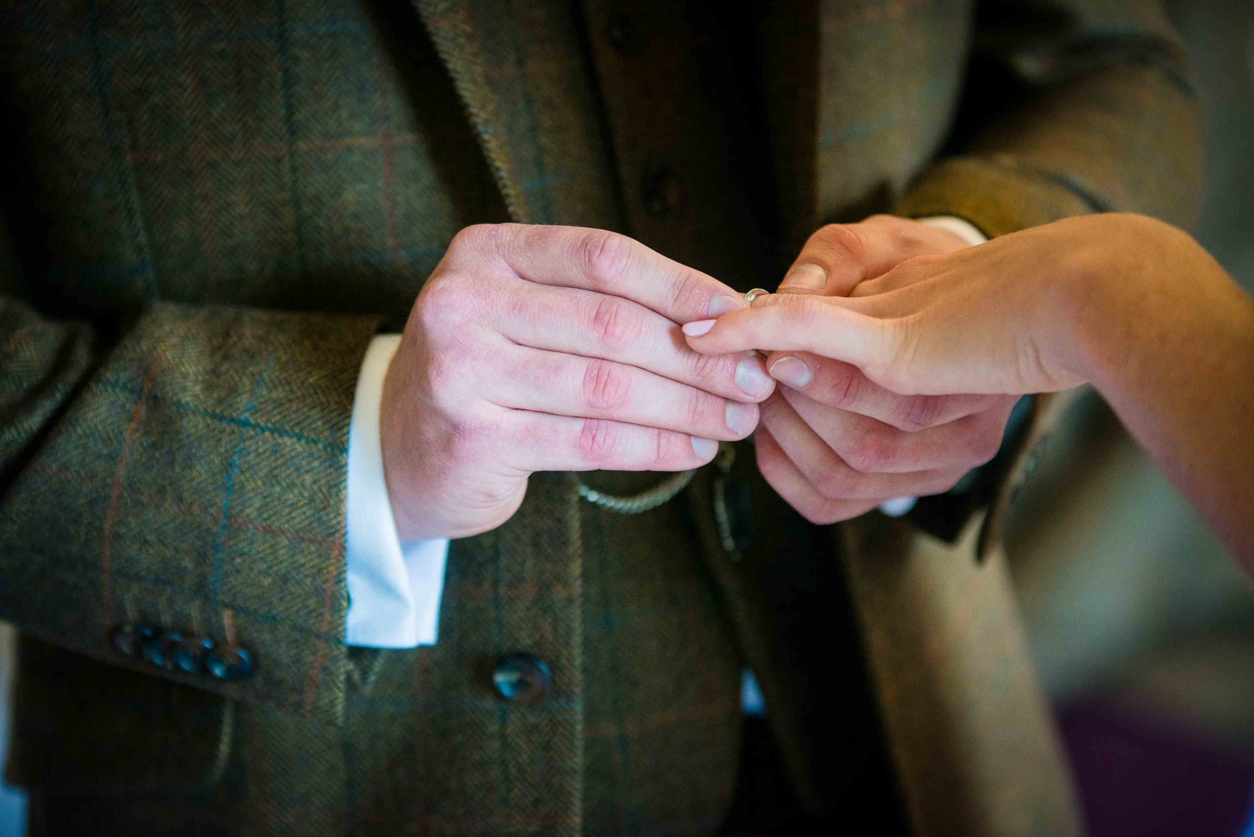 groom gives ring to the bride