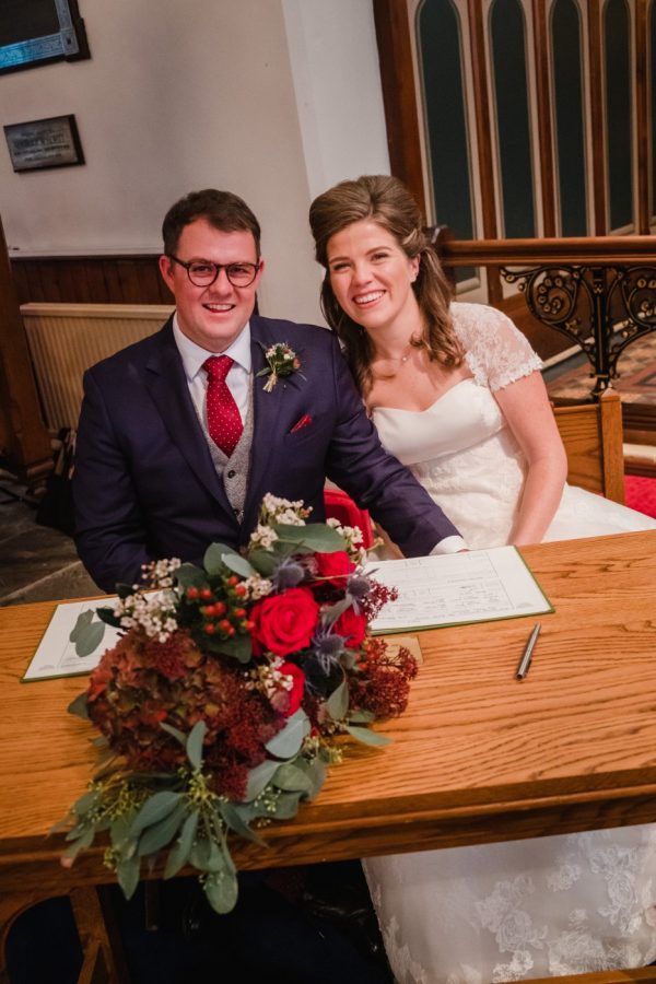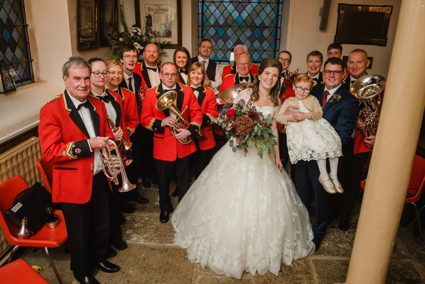 The ceremony was a beautiful service in their local church. During the ceremony the choir sang, the local brass band played, and their friends read beautiful poems. It was so personal.