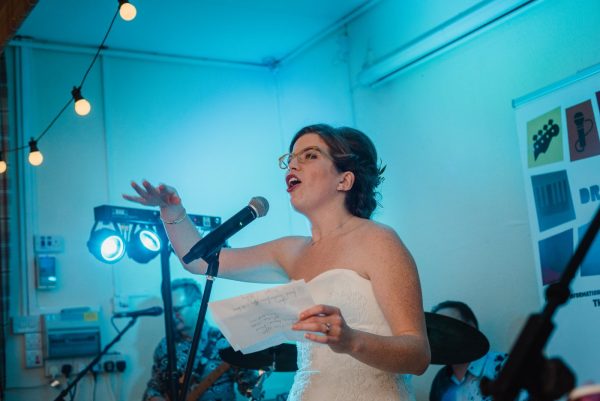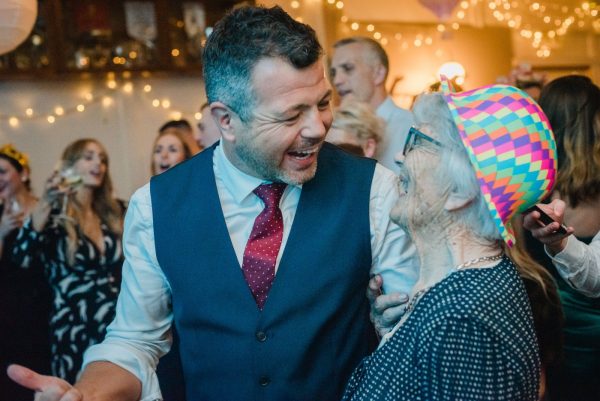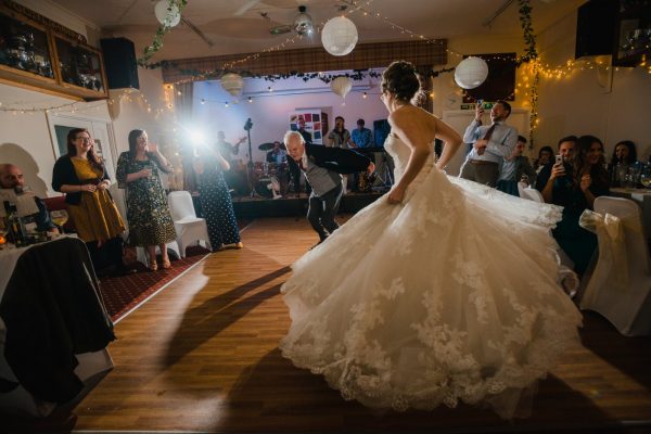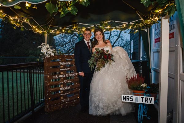 The couple a friend who was a pianist in the afternoon, and a live band in the evening. The couple spent the day before decorating the reception room with colourful hot air balloons. For dinner they had a roast dinner, and the first dance was brilliant, Becky started off by dancing to Queen with her Dad. The song was “Somebody to love”, then Gareth joined in and it was a real spectacle for the guests. They finished off the evening with a massive dance party to the band playing everyone’s favourite songs.