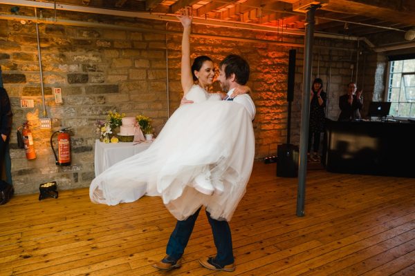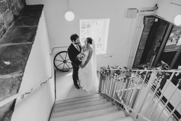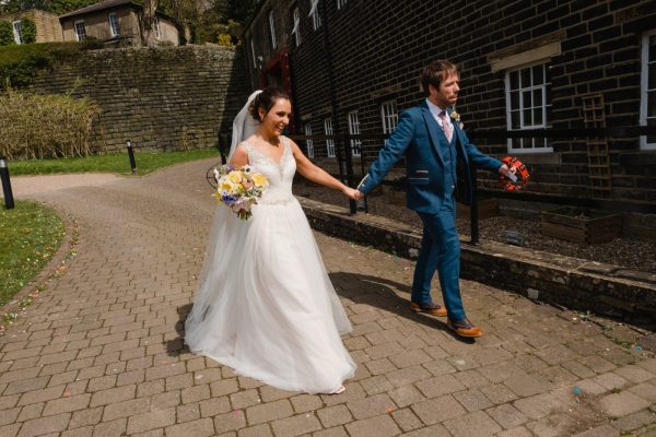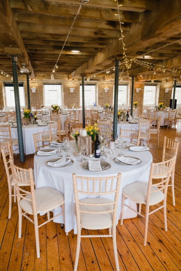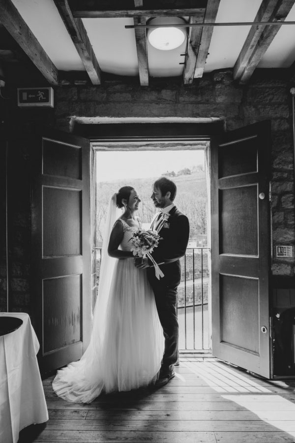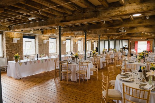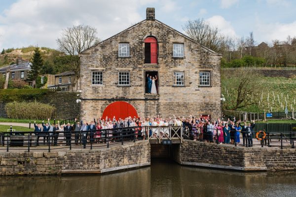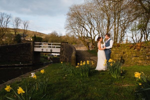 It’s an imposing warehouse building on the edge of the Huddersfield Narrow canal. A beautiful countryside setting for a wedding with stunning views at every side.