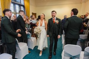 bridesmaids watching their friend Sheffield Town Hall for the wedding